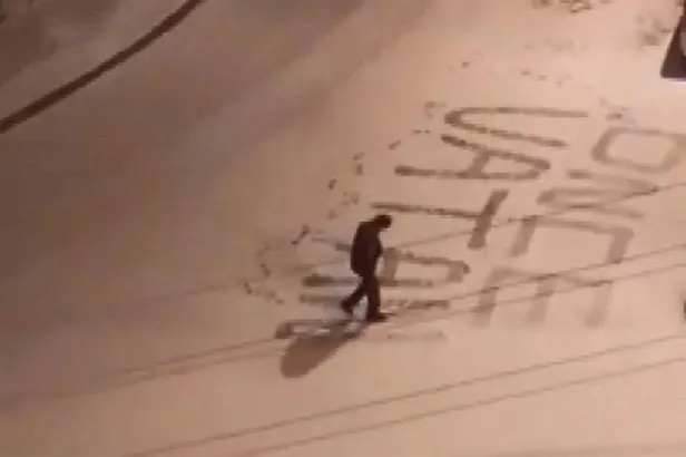 Kırşehir'i dün akşam saatlerinde etkisi altına alan kar yağışında basın anıtı mevkinde görevli bir polis memurunun, ayaklarıyla beyaz örtüye 'Önce Vatan' yazdığı sosyal medya paylaşımlarında rekor kırdı.