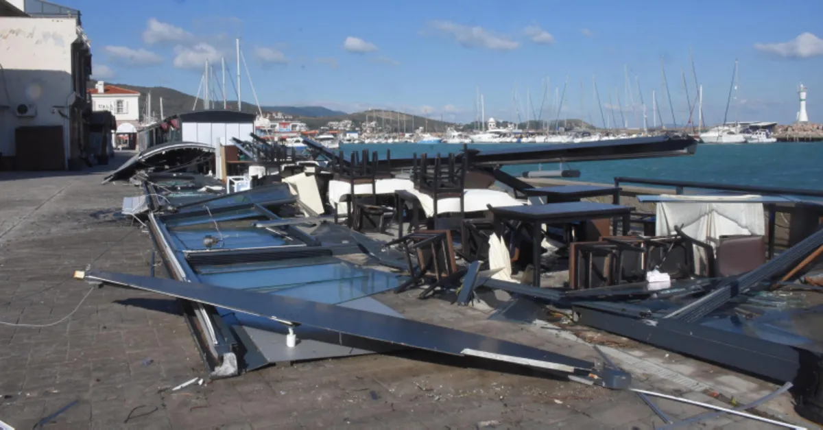 İzmir'de dün dün başlayan ve saatteki hızı 100 kilometreye kadar çıkan fırtına nedeniyle sahilde bulunan kafelerin masa ve sandalyeleri kullanılamaz hale geldi, evlerin çatıları uçtu, camlar patladı. Urla sakinlerinden Rıfan Raufoğlu, 'Ekmek almak için mecburen sahile çıktığımda neredeyse denizin taştığını gördüm. Gece boyunca çatılar da uçtu.” ifadelerini kullandı.