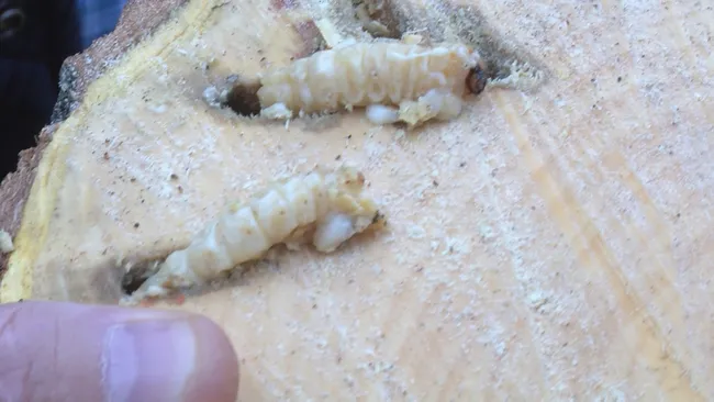 Yaklaşık 7 ayın ardından o yumurtalar çatlıyor ve larvaya dönüşüyor. En büyük zararı larva döneminde veren Teke böceği beslenmek için ağacın içerisindeki dokuyu yiyor. Ağaçların içerisinde oluşan bu boşluklar ağacın beslenmesine engel oluyor ve ağaçların devrilmesine yol açıyor.