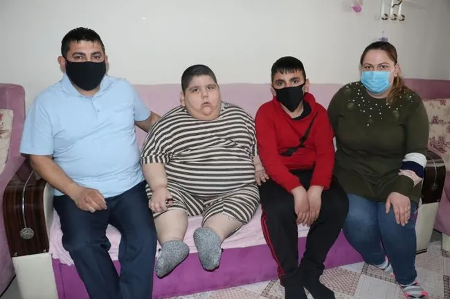 Samsun'da 'Leptin hormonu eksikliği' tanısı konulan Yağız Bekte (5), hastalığı nedeniyle hızla kilo alarak 90 kiloya ulaştı. Aşırı kilosu nedeniyle çeşitli sağlık sorunları da yaşayan Yağız, geceleri solunum cihazına bağlı olarak uyuyabiliyor. ABD'de hastalığın tedavisi için uygulanan yöntemi denemek isteyen aile, kilo almasının önüne geçemedikleri küçük çocuklarının, sağlığına kavuşacağı anı umutla bekliyor.