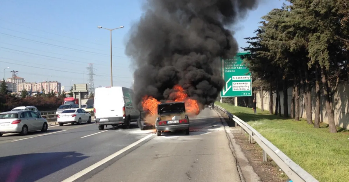 Son dakika | TEM Otoyolu'nda yangın paniği! Araç kullanılamaz hale geldi