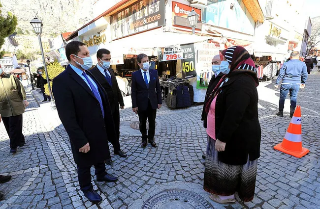 Kentin işlek cadde ve sokaklarında polis ekipleri tarafından denetimler yapılıyor, belediye hoparlöründen yapılan anonslarla vatandaşlar maske ve mesafe konusunda uyarılıyor. İçişleri Bakanlığı'nın kontrollü normalleşme döneminde dinamik denetim modeline geçileceği ve ilk uygulamanın 260 bin personelle tüm ülkede başlatılacağı açıklamasının ardından, 'Yeni Dinamik Denetim Süreci' kapsamında esnaf ve vatandaşlara yönelik denetimler gerçekleştirdi. Denetimlere katılan Amasya Valisi Mustafa Masatlı, vatandaşları sosyal mesafeye dikkat etmeleri konusunda uyardı.