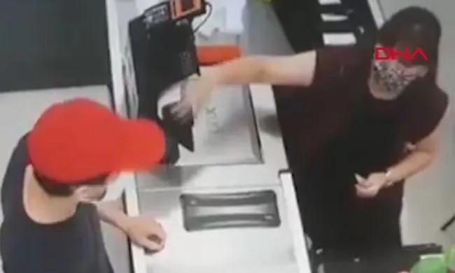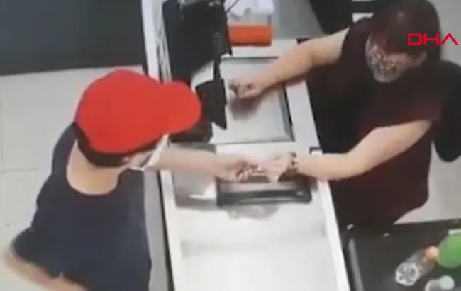Rahibin soygunu gerçekleştirdiği o anlar marketin güvenlik kamerasına anbean yansıdı.