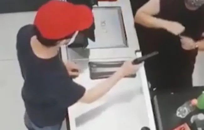 Görüntülerde rahibin Moreira'nın kasada önce bir müşteri gibi ödeme yapmak için cüzdanını çıkardığı, ardından market çalışanının kasayı açmasıyla sahte silahıyla soygunu gerçekleştirdiği görülüyor.