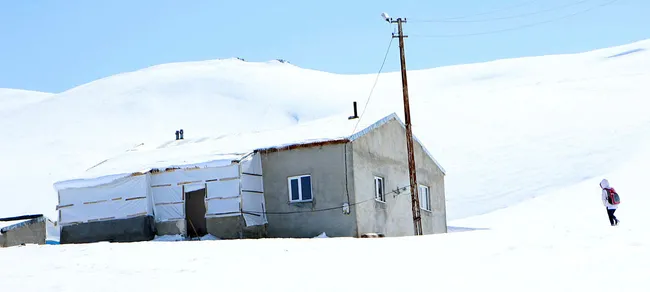 Deniz seviyesinden 2350 metre yüksekliğe kurulan mezrada, sürekli rüzgar estiği için çocuklar okula gidiş- gelişlerinde zor anlar yaşıyor.