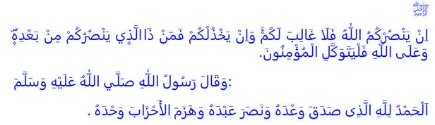 Okuduğum hadis-i şerif'te ise Sevgili Peygamberimiz (s.a.s) şöyle buyuruyor: "Hamd, vaadini yerine getiren, kuluna yardım eden ve düşman topluluklarını tek başına yenilgiye uğratan Allah'a mahsustur."