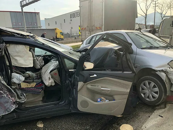 Yolun ortasındaki bariyerleri aşan tır, İnegöl istikametine gitmekte olan araçlara çarpmaya başladı.