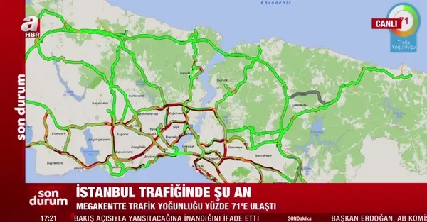 Trafik yoğunluğu 16.10 itibariyle yüzde 71 olarak kaydedildi.