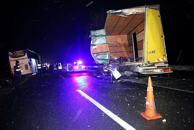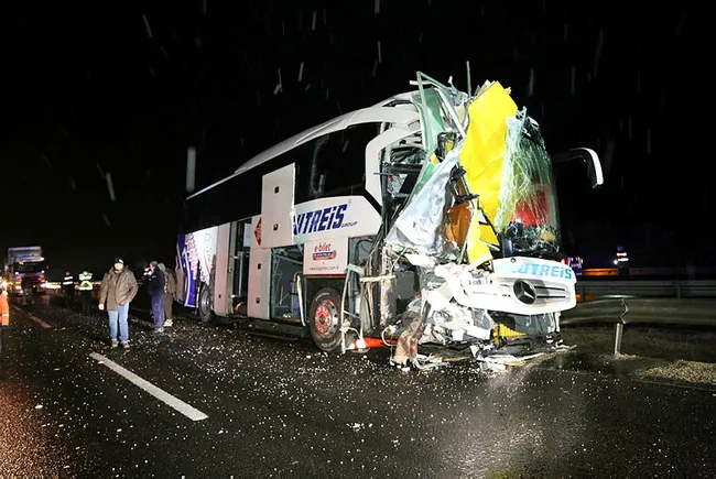 Bolu'da yolcu otobüsü arıza yapan kamyona çarptı: Yaralılar var