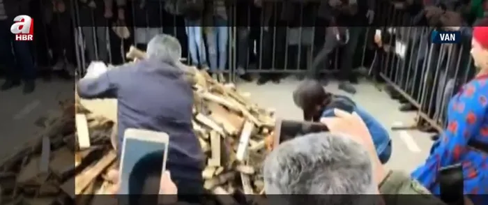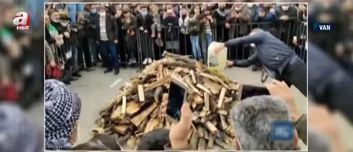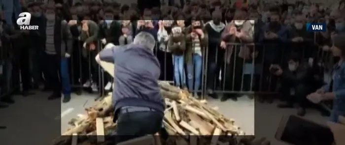 HDP'li milletvekillerinin de katıldığı kutlamalarda ateş yakılması için odunlar dizildi. Bir kişi odunların üstüne benzin döktü.