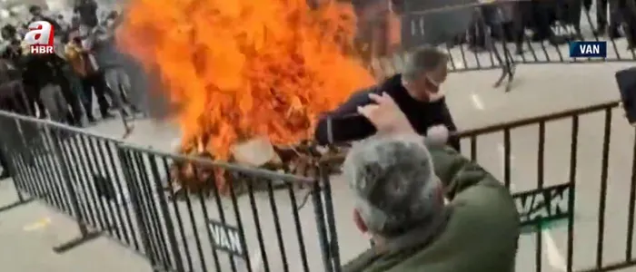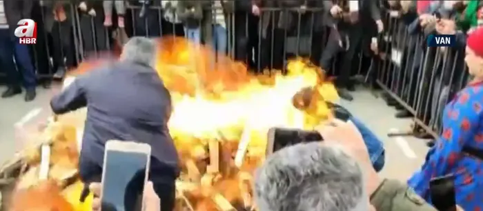 HDP öncülüğündeki nevruz kutlamalarında PKK paçavraları açıldı yasa dışı sloganlar atıldı. Nevruzu bahane ederek meydanları kışkırtan PKK sempatizanları Van'da faciadan döndü. Nevruz ateşini yaktıkları sırada alevlerin arasında kalan 2 kişi yaralandı. O anlar bakın nasıl kameraya yansıdı.