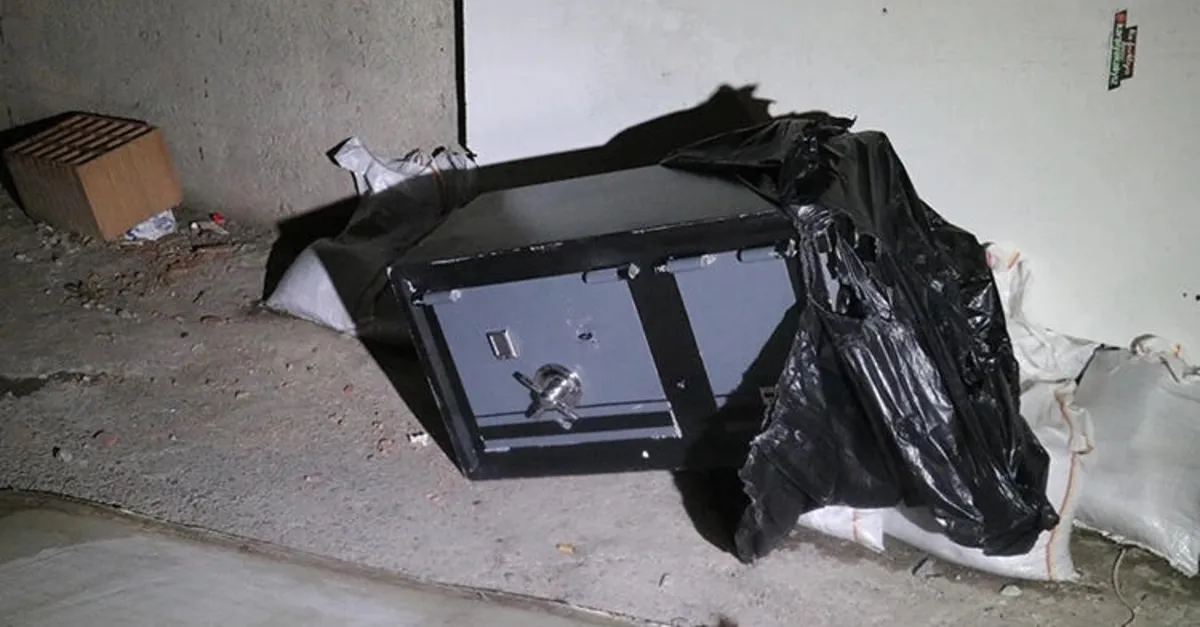Bölgede araştırma yapan ekipler, Yamanlar Mahallesi 7344 Sokak'ta siyah çöp poşetine sarılı halde suntaların arasına konulmuş çelik kasa buldu.