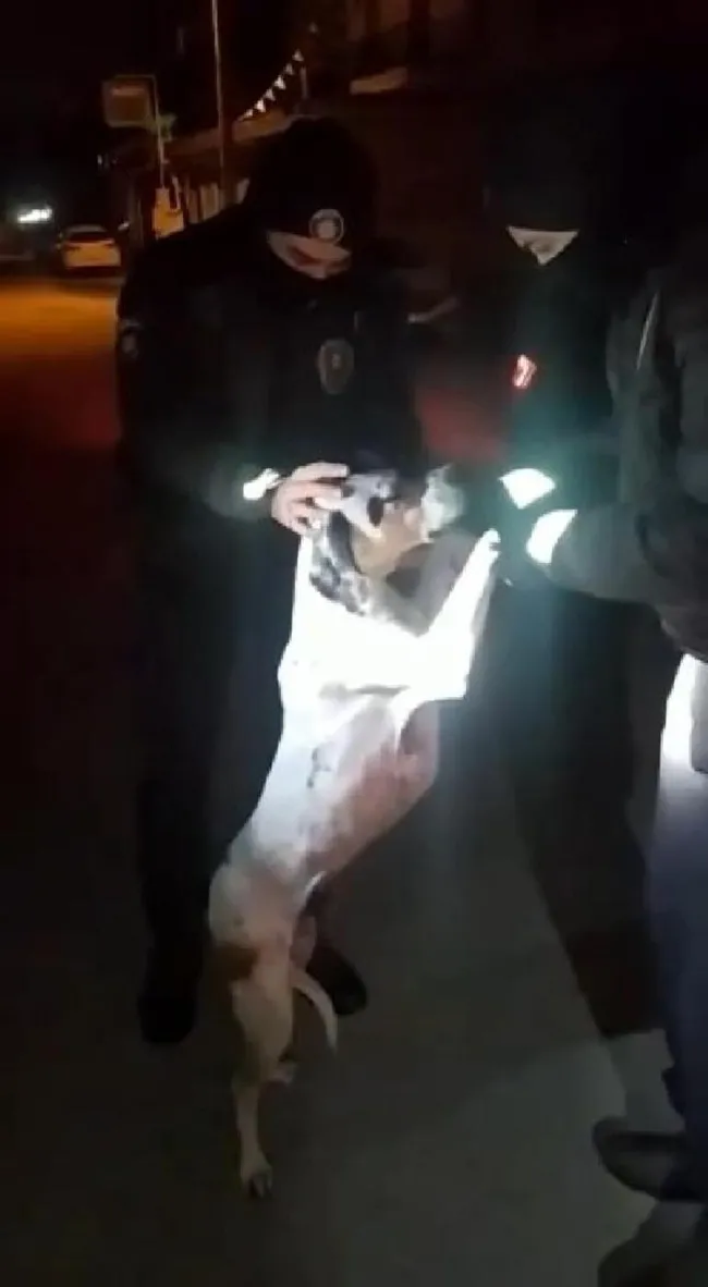 Serdivan ilçesinde dün akşam devriye görevinde bulunan mahalle bekçileri, bir sokak köpeğinin boynuna plastik kelepçe ve dibi olmayan kovanın takıldığını fark etti. Bekçiler, plastik kelepçe ve kovayı çıkardı.
