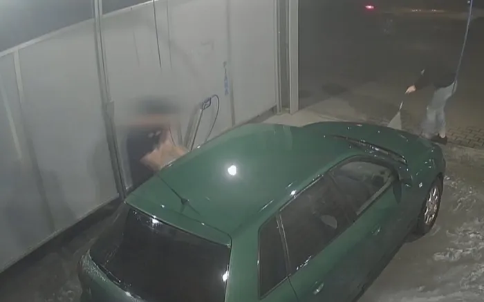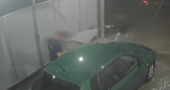 Güvenlik kameralarının saniye saniye kaydettiği olayda, kadın aracın ön tarafını tazyikli su tabancasıyla yıkadığı esnada üzerinde arka kısmında "Polis" yazılı tişört bulunan bir şahıs araca sol tarafından yaklaşarak şoför koltuğunun kapısını açtı.