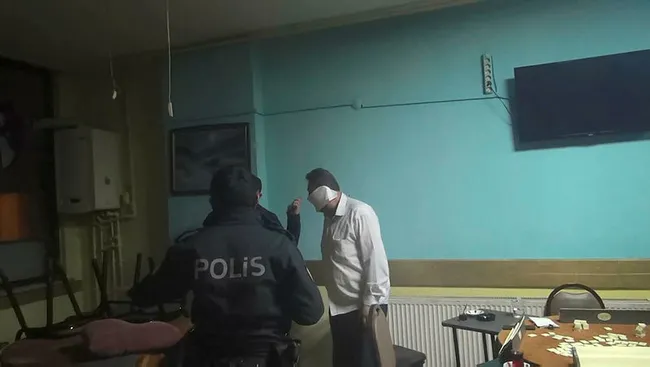 Kıraathaneye baskın düzenleyen polisler, içeride 10 kişi olduğunu ve oyun oynadığını tespit etti.