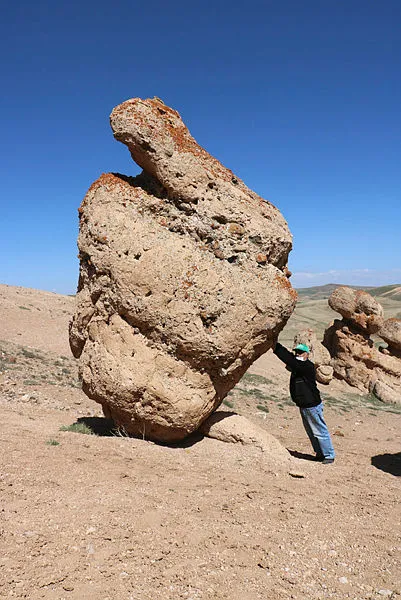 Boş arazide sadece bir bölgede bulunan ilginç kayalar, farklı kayaların destekleriyle ayakta duruyor. Görüntüleri kadar rivayetiyle de dikkat çeken kayalar görenlerin ilgisini çekiyor.
