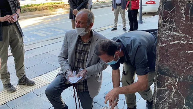 Namaz sonrası cami önünde engeli bulunan 54 yaşındaki Abbas Yılmaz'ın mendil ve yara bandı gibi eşyalar sattığını gören Vali Yırık bu duruma kayıtsız kalmadı. Önce Yılmaz ile bir süre sohbet eden Vali Yırık, daha sonra sattığı tüm ürünleri satın aldı.
