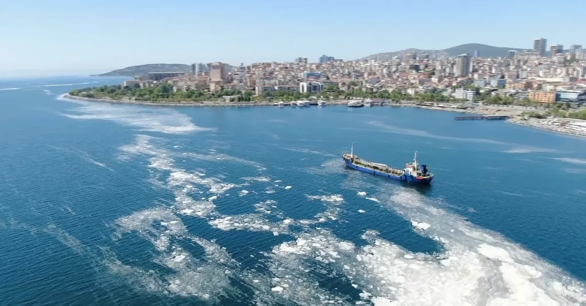 Özellikle Marmara Denizi'nde ortaya çıkan deniz salyası etkisini sürdürmeye devam ediyor. Kartal Sahili’nde kıyı kesimden uzaklaşarak denizin ileri kısımlarında oluşan deniz salyası yoğunluğu havadan görüntülendi.