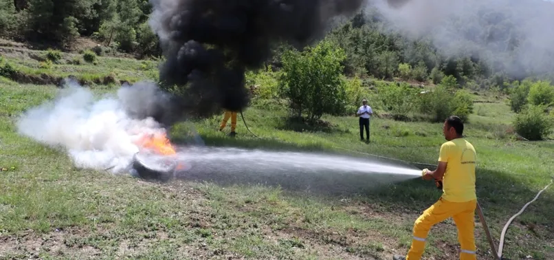 Amasya'nın Taşova içesinde ormancılar, her gün gerçekleştirilen tatbikatlarla yangınlara müdahale için hazırlanıyor.
