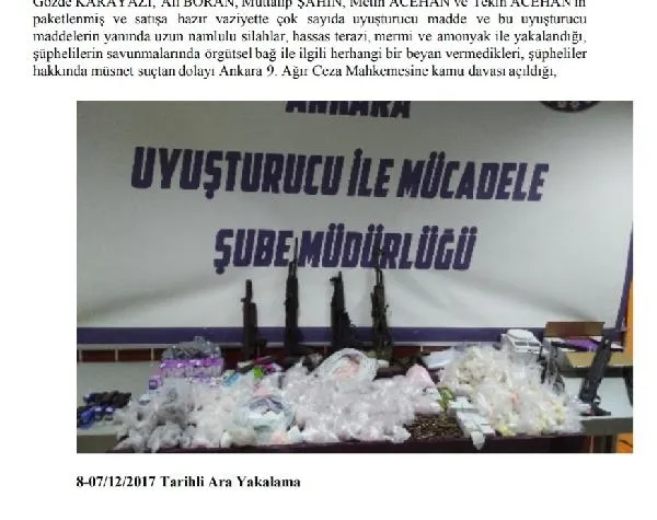 Ankara'da uyuşturucu ticaretinin yüzde 40'ını kontrol eden ve 'Ötleşler çetesi' olarak bilinen suç örgütüne yönelik soruşturma tamamlandı. 22'si tutuklu 85 çete üyesi hakkında, 3 yıldan 42 yıla kadar hapis cezası istemiyle dava açıldı. Operasyonda ele geçirilen ve uyuşturucu ticareti ve bu ticaretten elde edilen gelir ile ilgili notların yer aldığı not defteri ise dava dosyasına delil olarak girdi.