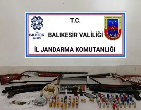 Bu kişilerin ev ve eklentilerinde yapılan aramalarda, 517 gram toz esrar, 30 gram kenevir tohumu, 3 adet sentetik uyuşturucu hap, 25 gram metamfetamin, 1 adet tabanca, 6 adet av tüfeği ve bu silahlara ait 84 adet fişek ele geçirilmiştir.