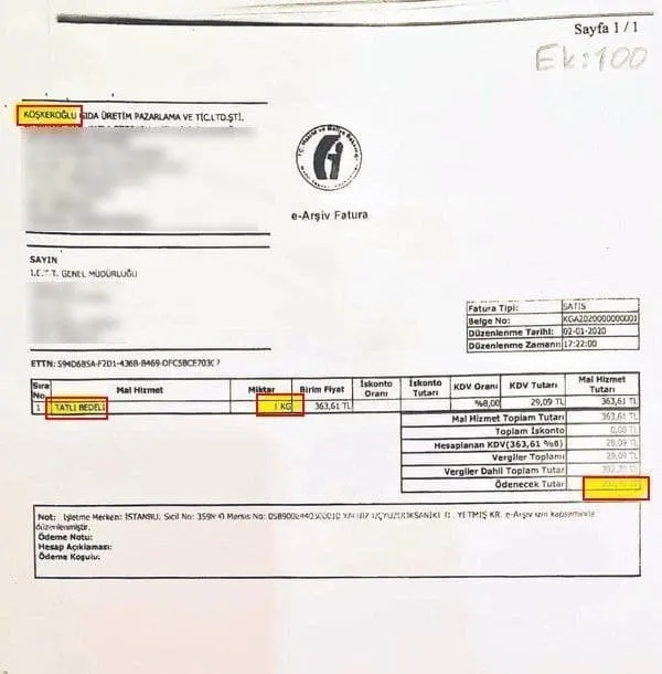 İstanbul Büyükşehir Belediye (İBB) Başkanlığı Meclis Denetim Komisyonu 2020 Yılı Denetim Raporu'nda; İBB'nin bağlı kuruluşu İstanbul Elektrik Tramvay ve Tünel İşletmeleri'nin (İETT) 1 kilo tatlıyı 392.70 liraya aldığı tespit edilmişti.