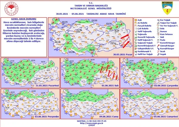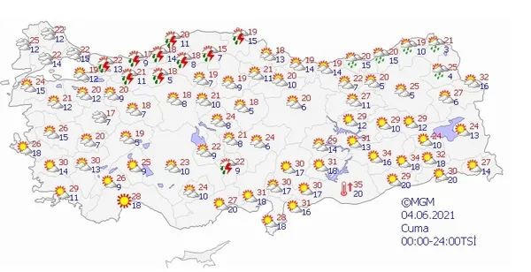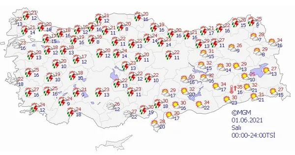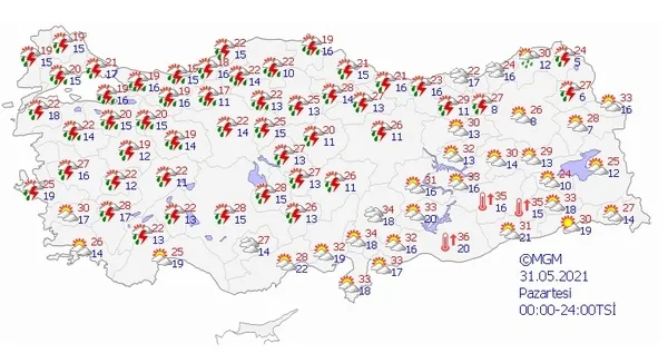 Meteoroloji hava durumu tahminini açıkladı. Yağmur ve gök gürültülü sağanak yağış; yurdun kuzey, batı, orta kısımları ve kuzey batı kesimlerini etkisi altına alacak. Son dakika haberine göre; hava sıcaklıklarının; batı bölgelerde mevsim normalleri civarında doğu kesimlerde mevsim normalleri üzerinde seyredeceği bildirildi. Sıcaklıkların Salı gününden itibaren batıdan başlayarak azalacağı duyuruldu. Peki, Türkiye genelinde hava durumu yarın (31 Mayıs 2021) nasıl olacak? Meteoroloji’nin 5 günlük hava durumu tahmini nasıl? İstanbul, İzmir ve Ankara'da hava yarın ve 1 hafta boyunca nasıl geçecek? İşte son dakika haberinin ayrıntıları…
