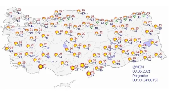Bazı illerde beklenen hava durumuyla günün en yüksek sıcaklıkları ise şöyle...