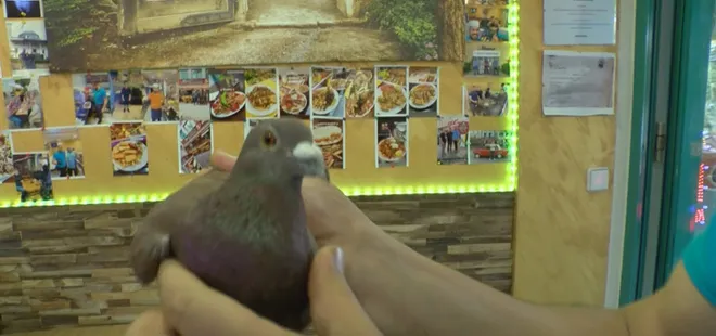 Almanya'dan Polonya'ya gitti! Dönüşte yorgun düşen posta güvercini Türk dönercisinde mola verdi