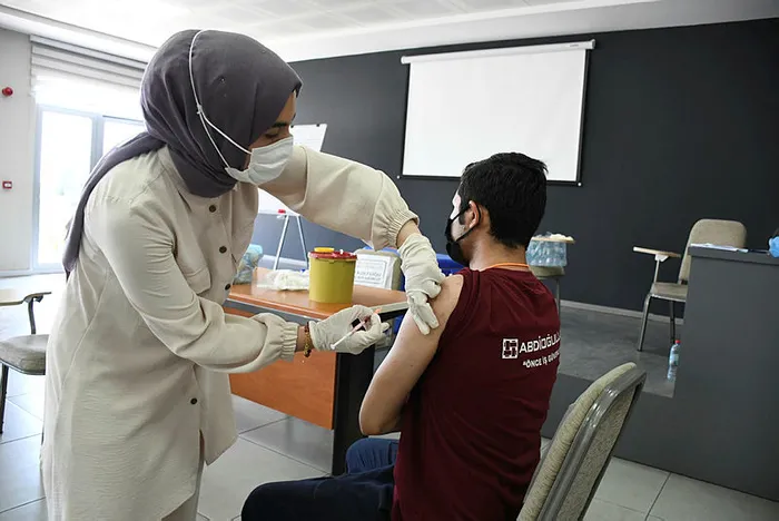 İl Sağlık Müdürlüğü ekiplerince Kapalıçarşı'nın Yönetim Kurulu Binasında aşı uygulama alanı oluşturuldu.