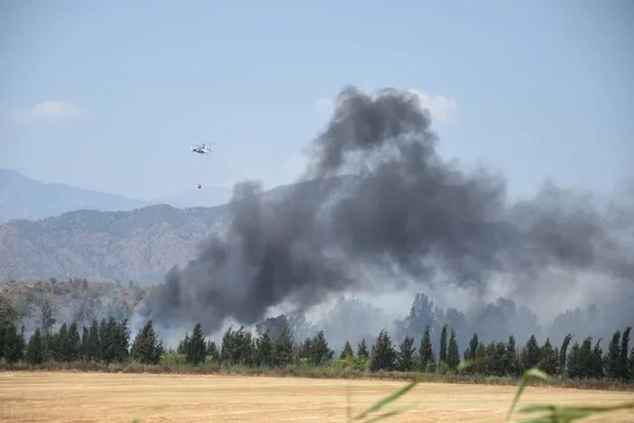 Dalaman'da dün kağıt fabrikasında başlayan yangın, önce açık cezaevi ardından da TİGEM (Tarım İşletmeleri Genel Müdürlüğü) arazilerine sıçramıştı.