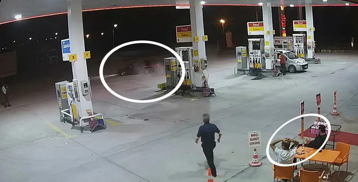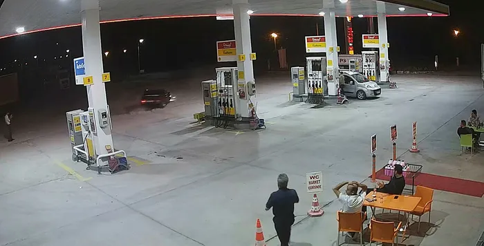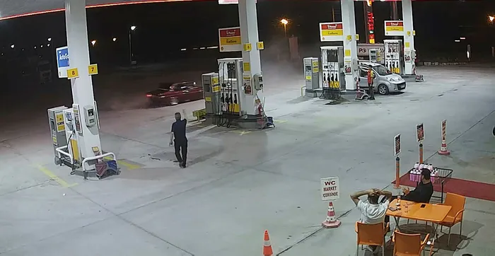 Görüntüde pompaya yanaşıp yakıt alan sürücünün, daha sonra yavaş bir şekilde ilerleyip, istasyonun ortasındaki boş alana geldiği ve hızla aracını döndürmeye başladığı, daha sonra içeriden çıkan kişinin tepki göstermesi, sürücünün hızla istasyondan uzaklaşması yer alıyor.