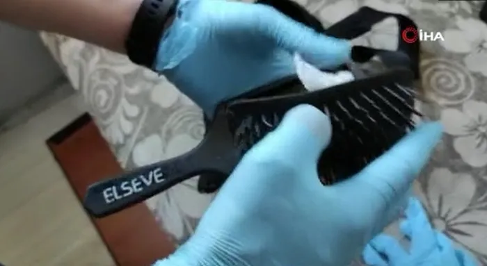 Tarağı kontrol eden polis ekiplerinin yaptığı incelemede tarak içerisine gizlenmiş sentetik kannabinoid (bonzai) maddesi ele geçirildi.