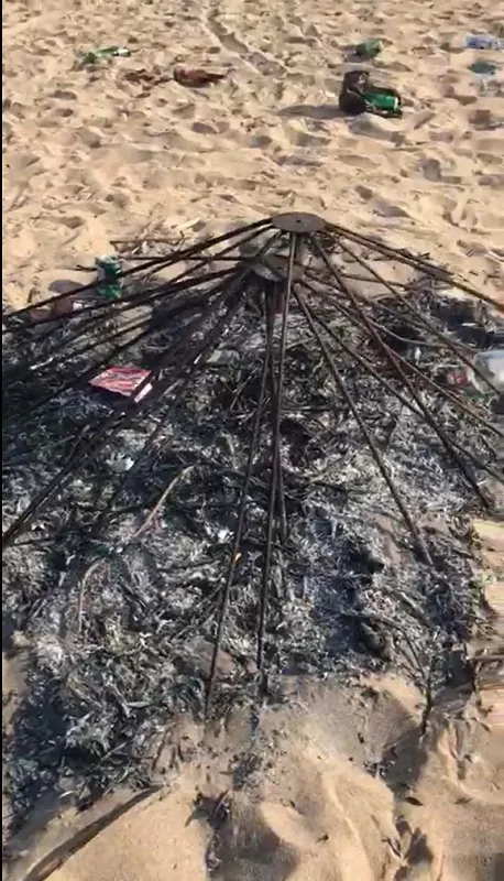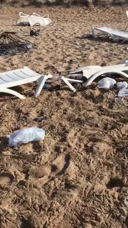 Partinin ardından sabah saatlerinde yapılan kontrollerde, plajda bulunan Bozcaadaspor Kulübüne ait şezlongların kırıldığını, şemsiyelerin yakıldığını, içki şişeleri ve gıda ürünlerinin ambalajlarıyla çevrenin kirletildiğini gördüklerini belirten Yılmaz, şöyle devam etti: