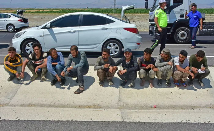 Konya’da şok görüntü! Kovalamacayla durdurulan otomobilin içinden 8 bagajından da 2 kaçak göçmen çıktı