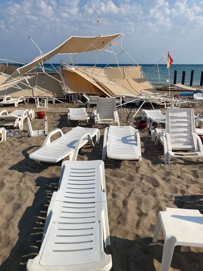 Antalya'da hortum sahili vurdu! Şezlonglar savruldu