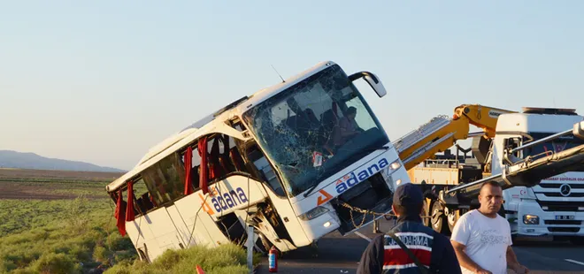 Kaza, saat 04.30 sıralarında Aksaray- Ankara kara yolunun 45'inci kilometresinde meydana geldi. Adana'dan Ankara'ya giden Kerem Özbek (38) idaresindeki 01 ATH 106 plakalı yolcu otobüsü, sürücüsünün kontrolünden çıkıp şarampole devrildi.