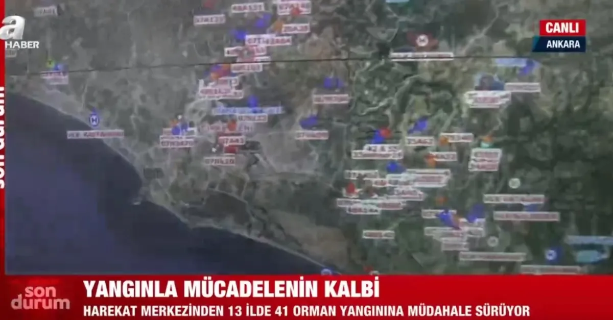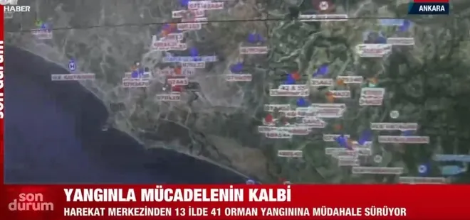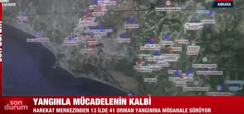 ''Şu an Türkiye'de 13 ilde 41 ormanıyla mücadelenin tamamı Yangın Harekat Merkezi'ndeki ekranlar vasıtasıyla takip edilerek hava, kara araçları yönlendiriliyor. Cep telefonu ve telsizler aracılığıyla kesintisiz iletişim sağlanıyor.
