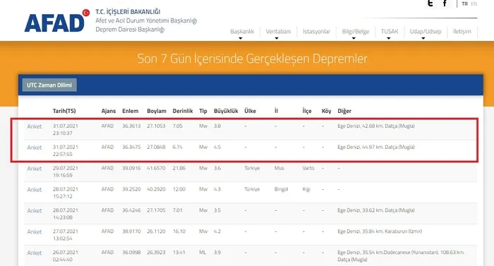 — AFAD Deprem (@DepremDairesi) July 31, 2021