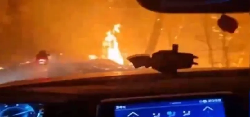 Seyir halindeki araç yangın bölgesine ilerlediği esnada alevlerin arasında kaldı. Araç bulunan vatandaşların ''Allah'ım yardım et!'' feryatları yaşadıkları korkuyu gözler önüne serdi.