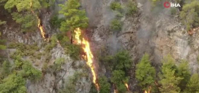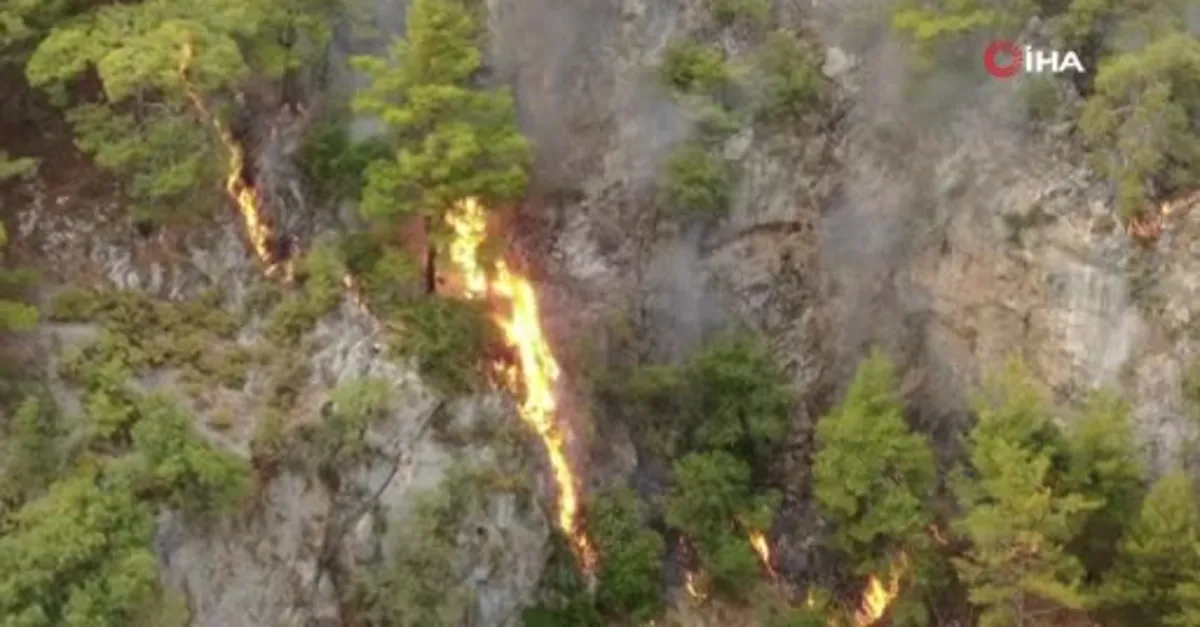 Yanan saha havadan görüntülenirken, duman bulutu gökyüzünü kapladı. Yangının seyrinin Sazak Mahallesine doğru ilerlediği öğrenilirken, üst bölgelerde bulunan Otman Mahallesinin ise şimdilik tehlike arz etmediği öğrenildi.