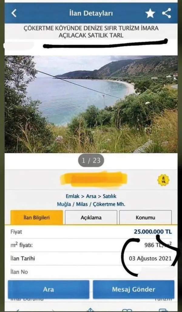 Hürriyet'in haberine göre; 'İmara açılacak' vaadiyle yayınlanan bazı ilanlar sosyal medyadan gelen tepkiler üzerine yayından kaldırıldı. Duruma tepki gösteren Emlak Müşavirleri Derneği (TÜGEM) Başkanı Hakan Akdoğan vatandaşları uyardı. "Arazilerin imarları olmamasına rağmen imara açılacak diye reklam yapıyorlar" diyen Akdoğan "Daha acımız dinmemişken, yangının külü soğumamışken birçok emlak sitesinde yanan arazilerin satışa çıkarıldığını tespit ettik. Bu tutumu son derece yanlış buluyoruz" dedi.