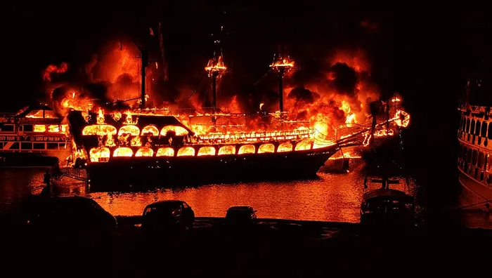 Bir gezi teknesinde başlayan yangın, Kkısü sürede bitişikteki 3 tekneye sıçradı.