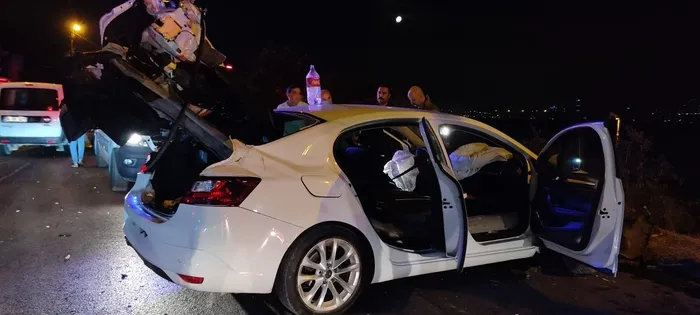 Çarpmanın etkisiyle yol kenarındaki bariyerler otomobilin içine ok gibi saplandı.