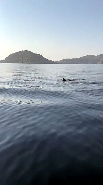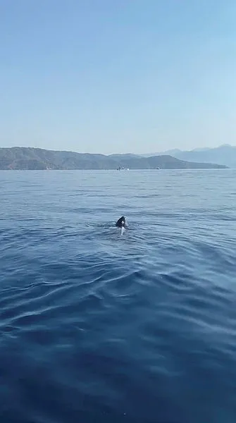 20 yıldır yat kaptanlığı yaptığını belirten İlknur Asar, bir başka tekneye personel götürmek için sabah denize açıldıklarını belirterek, dönüşte saat 10.00 sıralarında gemici personeli Buse İnceler ile deniz yüzeyinde önce kafasını gördükleri canlıyı yunus balığı sandıklarını kaydetti.
