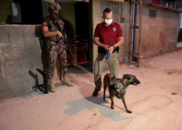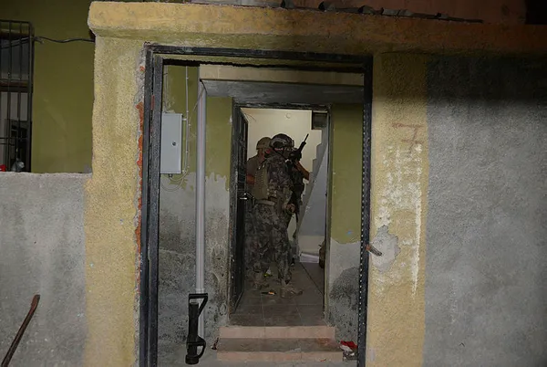 Özel harekat polislerinin de desteğiyle tespit edilen adreslere baskın düzenleyen ekipler, bazı evlere kapıları kırarak girdi. Bu sırada bazı polisler uzun namlulu silahlarla sokak girişlerinde önlem aldı. Ekipler evlerde narkotik köpeğiyle arama yaptı.