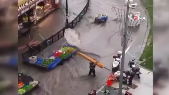 Yaklaşık 5-10 dakikada pazar yerinde hayatı yerle bir eden yağış bir süre sonra dindi.
