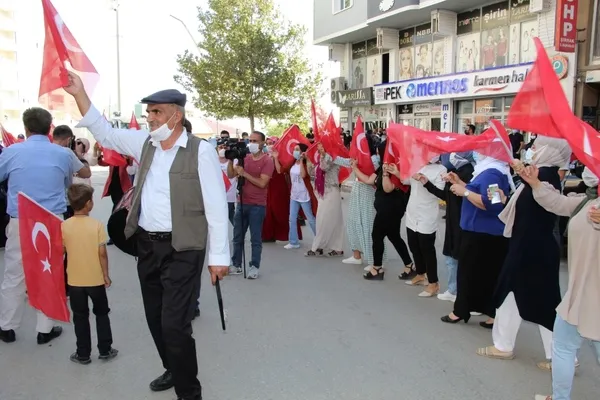 Şırnak'ta, terör örgütü PKK’dan kaçıp güvenlik güçlerine teslim olan oğluna kavuşan Emine Üstek, HDP il binası önünde davul zurna eşliğinde halay çekti. Kaçırılan çocuklarının fotoğraflarını taşıyan aileler, burada 'Kahrolsun PKK, işbirlikçi HDP', 'Şehitler ölmez, vatan bölünmez', 'Türk-Kürt kardeştir, PKK kalleştir' sloganları attı.
