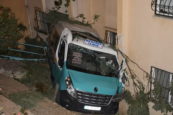 İzmir’in Menemen ilçesinde, düğüne giden vatandaşları taşıyan servis minibüsü freninin patlaması sonucu geri geri kayarak 4 katlı apartmanın bahçesine düştü. Kazada ilk belirlemelere göre 20 kişi yaralandı.