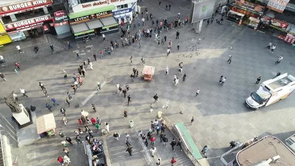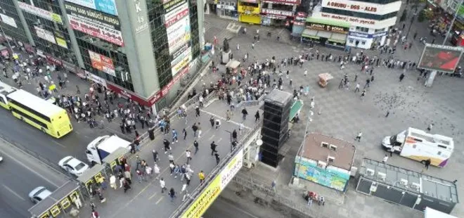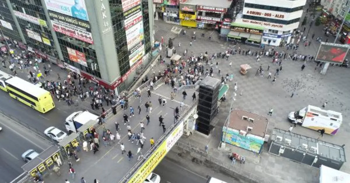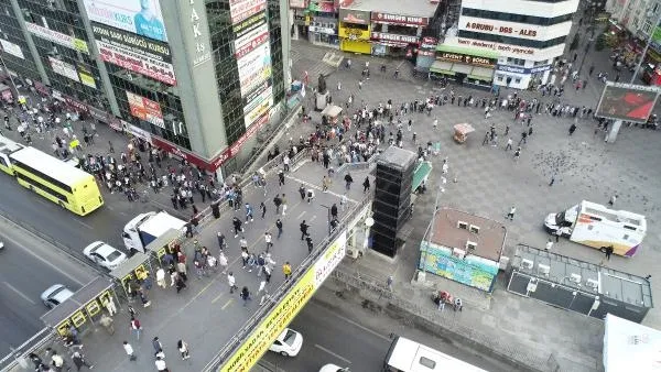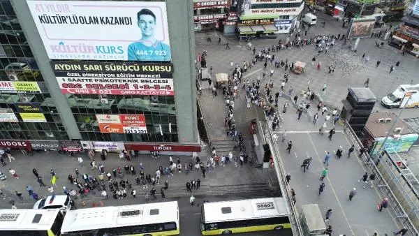 Sefer yapılamayan metro durakları nedeniyle Şirinevler'de metrelerce otobüs kuyruğu oluşmaya başladı. Kalabalık havadan da görüntülendi.